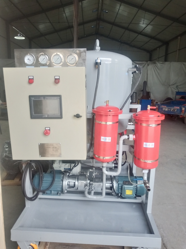 真空除水的效果主要與工作真空度與油液溫度有關。真空度越低,溫度越高,除水效果越好。油溫一般為60℃左右,溫度過高將加速油液的氧化。對於液壓油,真空度一般在600-700Pa,可使油中的含水量降至真100ppm以下,對於變壓器絕緣油,可采用更高的真空度,含水量可降到10ppm。真空脫水能夠有效去除油液中各種狀態的水,並能除去油液中的空氣和各種揮發性物質。
